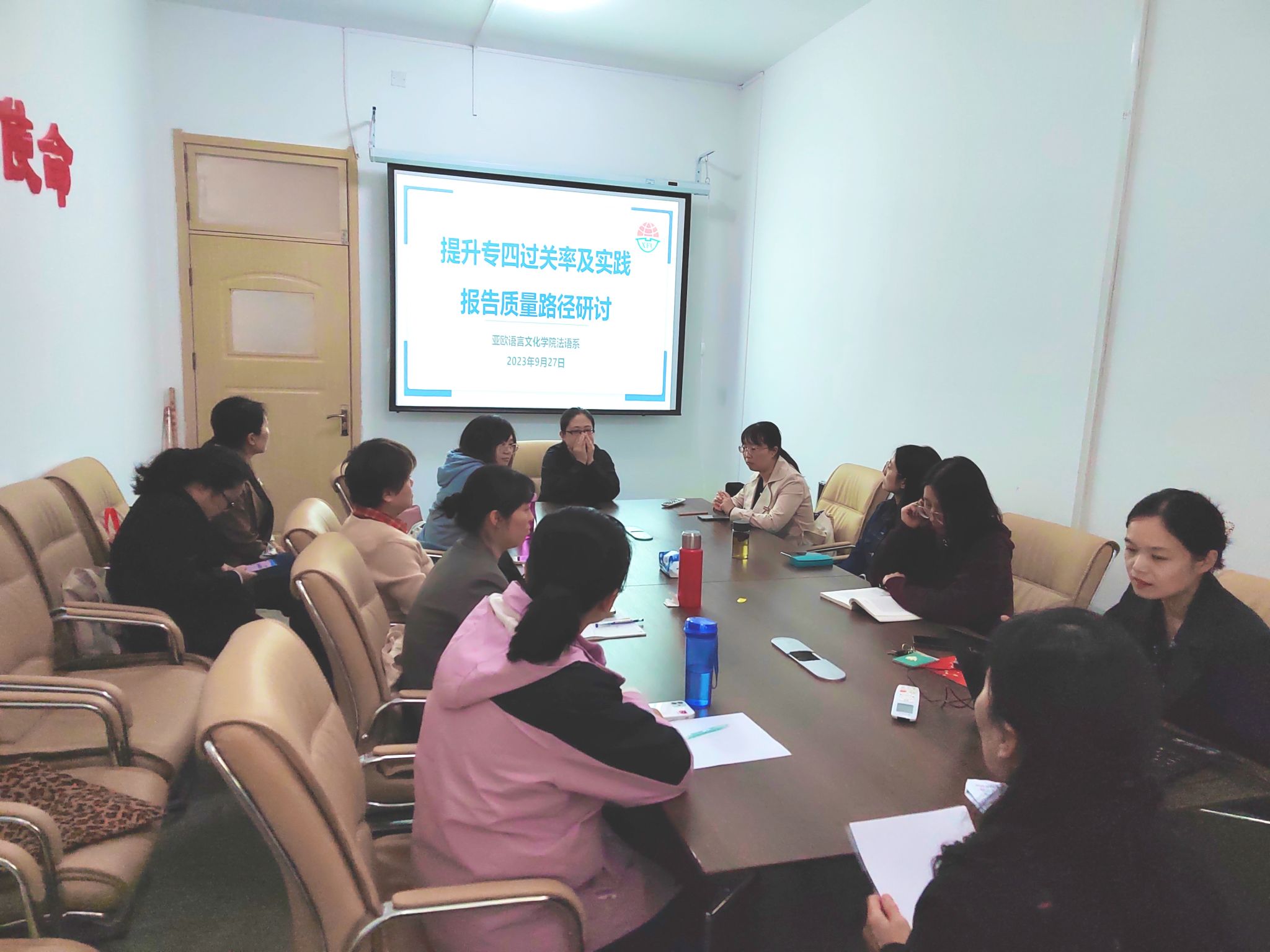 9月27日下午,bw必威西汉姆联官方网站法语系在3109召开本学期第四次教研会议,本次教研会议有两个议题:一是提升专四过关率路径研讨,二是提升实践报告质量路径研讨。法语专业全体教师参会,法语系主任王姗姗主持会议。