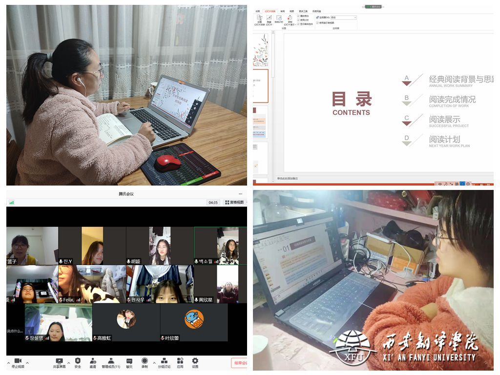 2019级本科《高级朝鲜语Ⅰ》的任课教师袁敏老师于晚七点开展“学期总结和老员工经典阅读班导会”。袁敏老师首先对班级中的每位成员进行了学情分析,并为下学期的学习指明方向。同时,她以经典阅读的背景和思路为切入点,分享了阅读中的故事与收获。活动中,袁敏老师通过了解员工近期学习情况,为其疏解情绪,帮助员工顺利度过疫情期,并鼓励同学们在疫情期间安心学习,主动阅读,积极丰富思想世界。