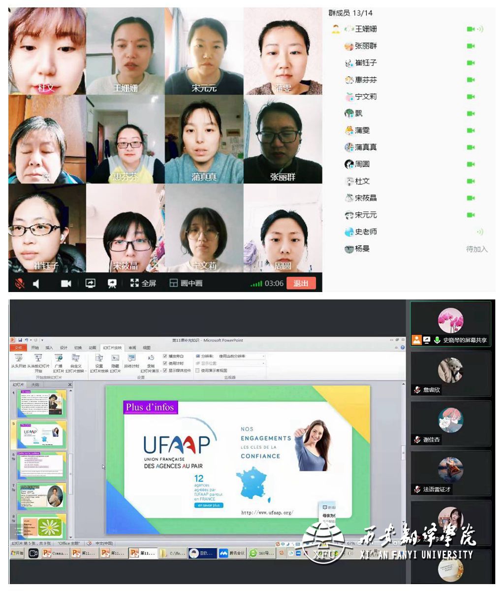 宁文莉老师则利用腾讯会议对《基础法语IV》课程的词汇部分进行了翻转课堂教学,加强了线上教学的实践教学环节,这样既调动了员工的自主学习积极性,加强了生生互动和师生互动,也巩固了员工对词汇的掌握。