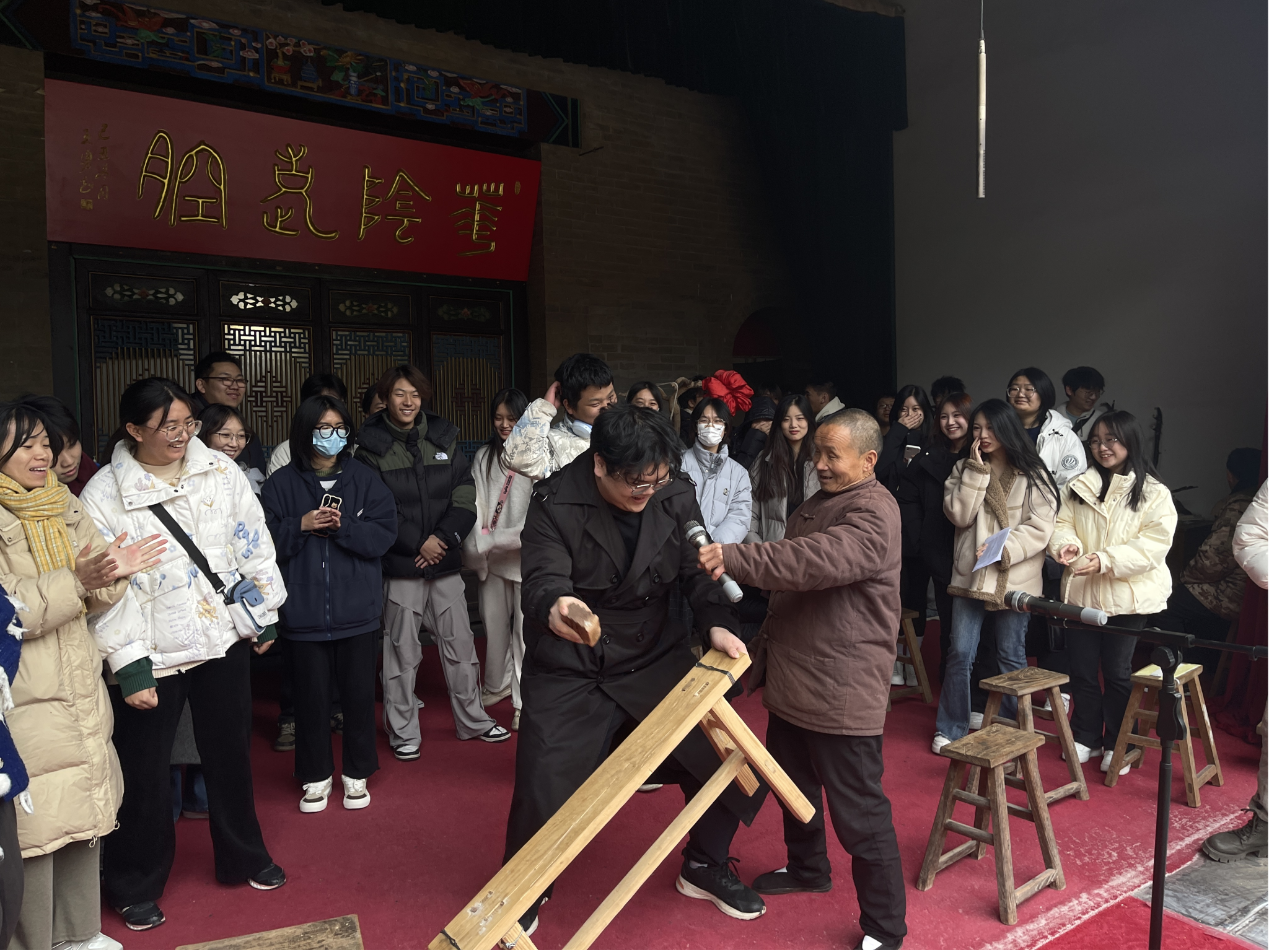 实习过程中,同学们在感悟传统历史文化的同时,学习相关日语讲解词,同时收集了景区的公示语,并进行中译日练习。同学们利用此次机会提高在实际场景中使用日语的能力,并更深入地了解和掌握相关的专业知识。这样的学习方式有助于培养员工们的语言运用能力并加深对民俗艺术的认识。此外,同学们还欣赏了非物质文化遗产——“老腔”的表演,并亲身上台体验老腔的魅力,从中深刻感受到中国文化历史的厚重。这样的体验不仅可以增进对民俗艺术的理解,还能培养对自己文化传统的认同感和尊重。