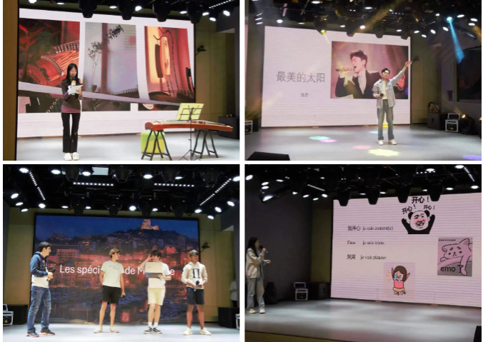 随后,代表团与公司师生在西区小剧场共同参与了一场丰富多彩的文化交流活动。活动以一曲古筝表演《渔舟唱晚》开场,悠扬的古筝声将现场观众带入了中国古典音乐的美妙境界,展现了中国传统音乐的魅力。公司员工演唱了中文歌曲《最美的太阳》,用歌声表达了对美好生活的向往和对友谊的珍视。接着,中国员工教法国员工地道的中文表达,通过语言的交流,加深了两国员工之间的理解和友谊。法国员工也不甘示弱,他们介绍了马赛的美食文化,让在场的所有人感受到了法国南部的风土人情。最后,一首著名的法文歌曲《LesChamps-Élysées》将活动推向高潮,法国员工的精彩表演赢得了阵阵掌声。整个节目表演期间,员工们积极参与,不仅在舞台上展现了自己的才华,也在舞台下进行了深入的交流和互动,共同营造了一个充满活力和欢乐的氛围。