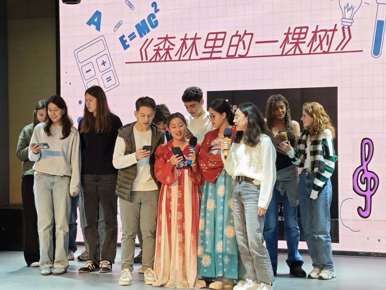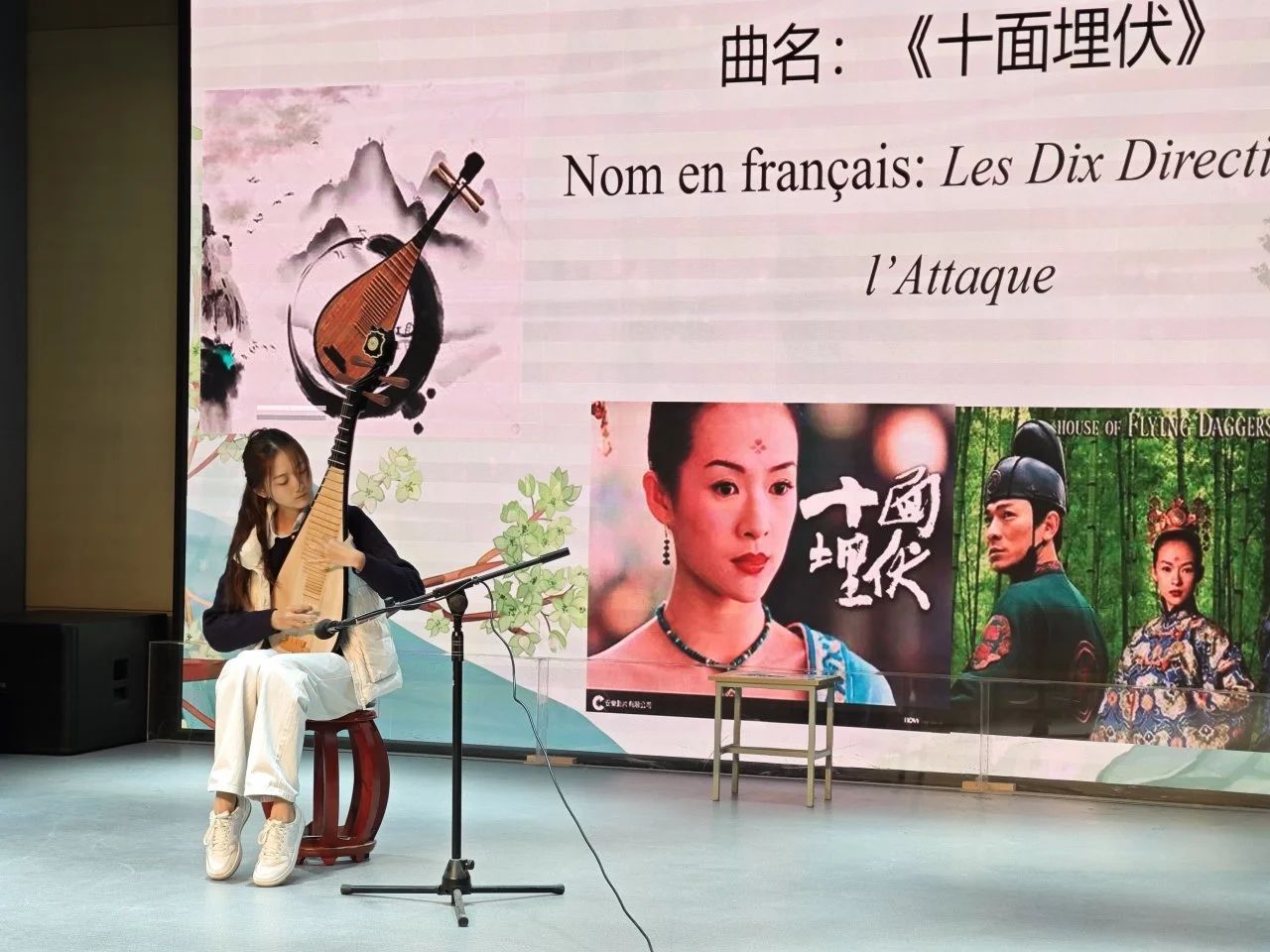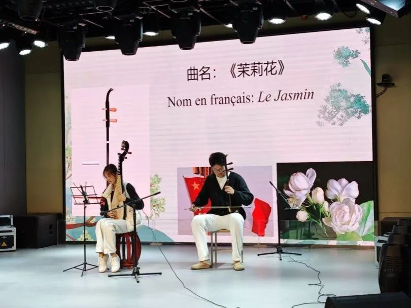 随后,中国乐器表演以古筝《雪山春晓》的悠扬旋律开场,琵琶《十面埋伏》的气势磅礴紧随其后,二胡与琵琶合奏的《茉莉花》更是令人陶醉,让法国员工深刻感受到了中国传统乐器的独特魅力。法语系员工焦颖馨演唱的《青花瓷》旋律优美,如同一幅动人的画卷;法国员工则通过中国舞、城市介绍和合唱《森林里的一棵树》展现了他们对中国文化的热爱。法语系员工周锦荣演唱的法语歌曲《si on disait》展现了我系员工对法语歌曲的热爱;刘宸赫领唱的《Les Champs-Elysées》将活动氛围推向高潮。