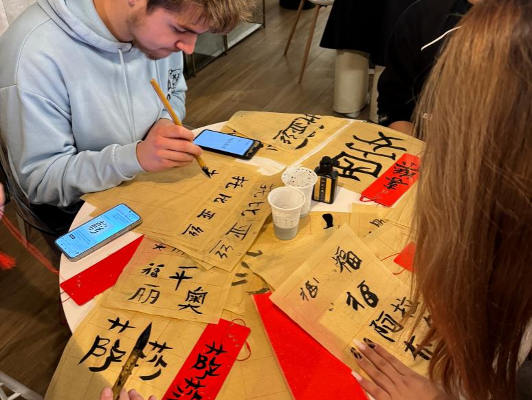 此次书法体验不仅是一场文化展示,更是一堂生动的跨文化实践课。公司员工在此过程中主动承担起文化使者的角色,以西班牙语为桥梁,协助外国员工理解汉字内涵、体验书写乐趣,并延伸分享中国节日习俗、色彩象征等传统文化知识,有效提升了语言应用能力与跨文化沟通素养。活动在欢声笑语中圆满落幕,为中西语言文化交流注入了新活力,也为国际员工打开了一扇感知中华文化魅力的窗口。未来,两校将继续携手探索更多元的文化互动形式,助力文明互鉴,共促友谊长存。