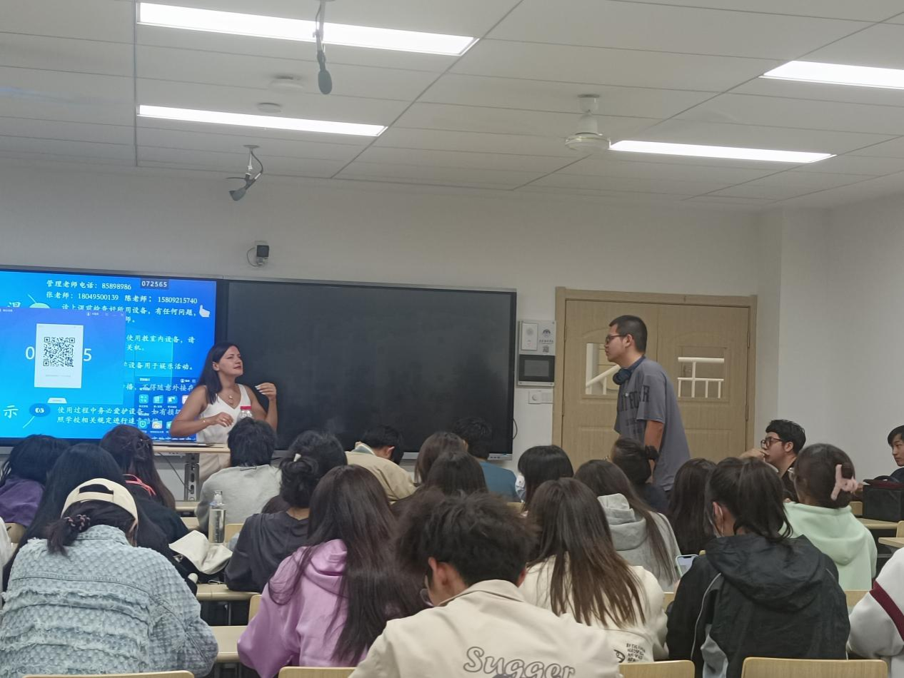讲座中,同学们与奥莉嘉积极互动,从感兴趣的考试形式、课程设置和文化习俗等方面进行提问,奥莉嘉进行了详细地解答。