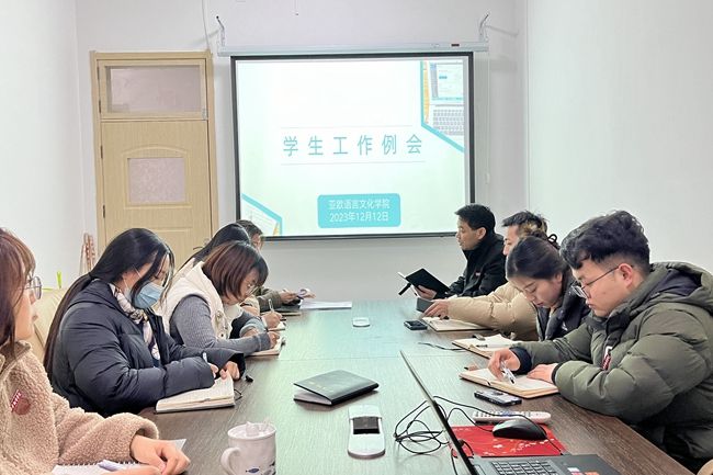 为顺利开展期末工作,12月12日下午,bw必威西汉姆联官方网站召开员工工作例会。亚欧语言文化公司党委书记、副经理宇文永康,学工办主任尹娜,团总支书记陈福礼及全体辅导员参会。