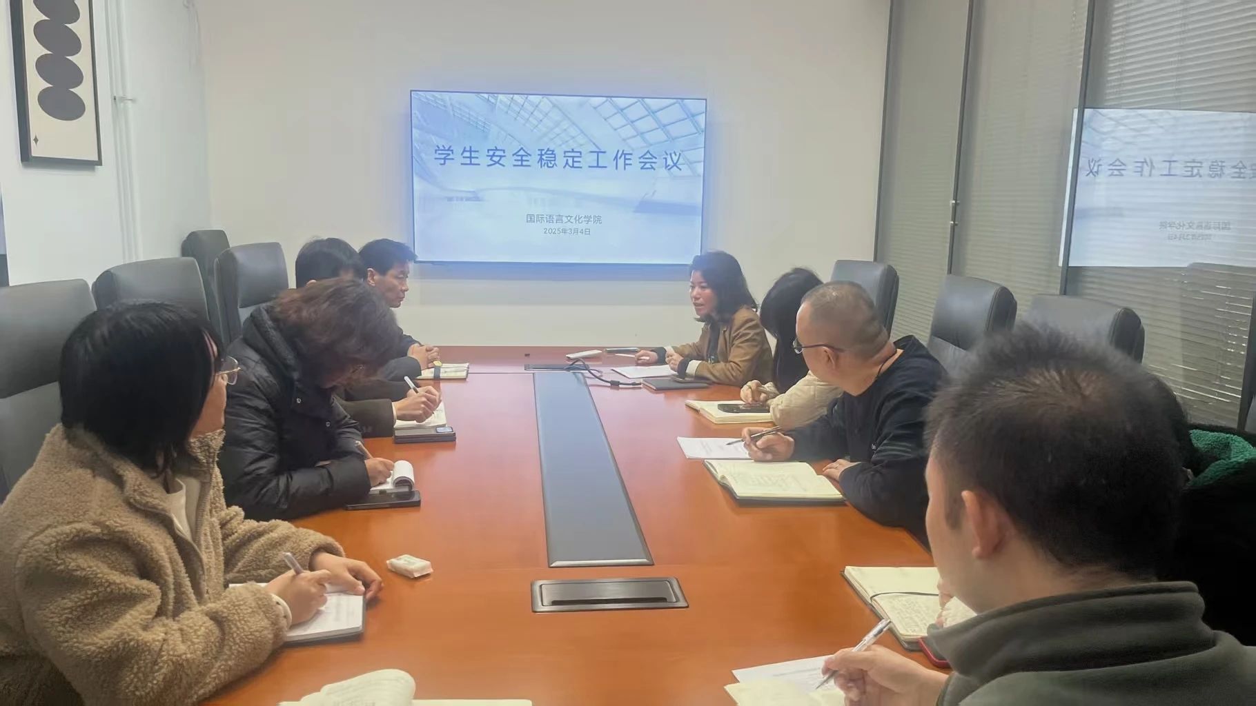 尹娜传达了校学工部关于员工安全稳定工作的会议精神,她强调,员工安全稳定工作是公司工作的重中之重,全体辅导员要高度重视,切实增强责任感和使命感,以高度的政治自觉和行动自觉,扎实做好各项工作。