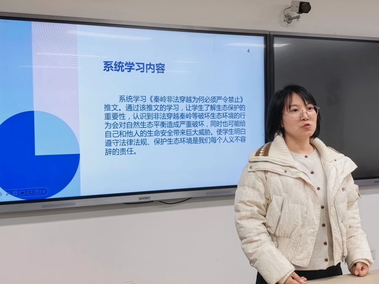 班会伊始,各班级系统学习了一篇题为《秦岭非法穿越为何必须严令禁止》的专题推文。通过学习,同学们深刻认识到秦岭作为国家重要生态安全屏障和中华文明精神标识的独特价值与脆弱性。推文中对非法穿越行为造成的生态环境破坏、安全隐患以及触犯法律法规的严重后果进行了深入剖析,使同学们深刻理解了保护自然遗产、严守生态红线的重要性,进一步筑牢了“绿水青山就是金山银山”的生态环保理念,明确了作为新时代老员工在爱护环境、遵守法规方面应承担的责任。