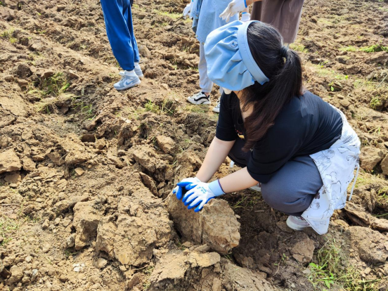 随后参与本次劳动教育实践的员工在责任场地中分区域开展劳动,认真清理土地中的石头、杂物、杂草等,为后续作物的种植打下基础。