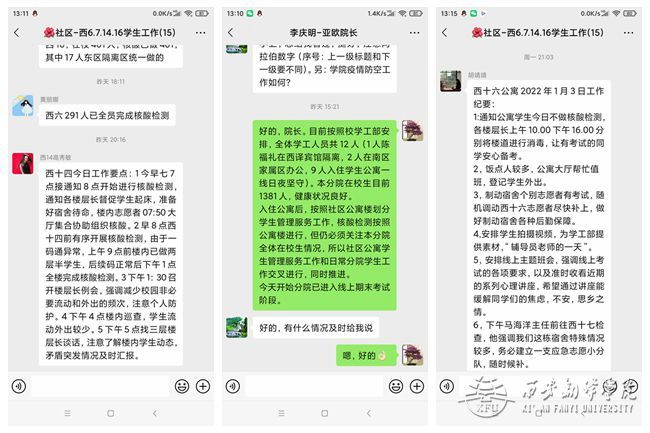 公司学工人员全情投入到疫情防控的员工管理与服务中。在校学工部的统一指导下,公司学工人员全体入住公寓,并已逐步完善了公寓管理服务的“社区化”模式。在公寓中心管理员和辅导员互相配合、携手并进下,公寓员工管理工作已全面铺开,步入正轨,各项工作有条不紊地推进着。疫情防控和员工公寓日常管理工作同步推进,为员工在公寓架起了随时对接管理和服务的沟通桥梁,积极解决员工们的各种困难和需求,为社区1655名员工提供了有效的服务保障。在日常管理过程中,辅导员对员工的思想引领和情绪疏导工作也非常到位。他们及时召开线上主题班会、积极引导员工参与各类学习与讨论、每天进行身体锻炼等有益于员工健康的各项活动。