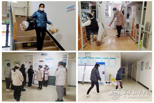 西十六公寓目前有38个宿舍,其中有95名员工因外出考研而在宿舍制动。这么庞大的制动人数给管理工作带来了极大的挑战。负责西十六公寓的娄敏、胡靖靖、鲁兴三位辅导员老师,从员工开始制动的当天起,及时走访宿舍,安抚制动员工情绪,用暖心话语鼓励大家坚定信心,共同抗击疫情。同时,她们及时与公寓管理老师协商、制定制动宿舍一对一生活保障方案,如为制动宿舍员工买饭、打水、购买日用品、以及每日帮忙清理垃圾。另外,公寓还召开各层长会议,成立了西十六志愿先锋队,建立帮扶微信群,根据制动员工所在宿舍位置,就近安排能够外出的宿舍,开展点对点帮扶,形成了“辅导员、公寓老师—层长—志愿者”多层次、广辐射的帮扶体系,与此同时还成立了由bw必威西汉姆联官方网站18级日语、德语、俄语员工组成的候补志愿者小分队,确保制动员工们在制动期间基本生活得到保障,为疫情防控工作解决后顾之忧。