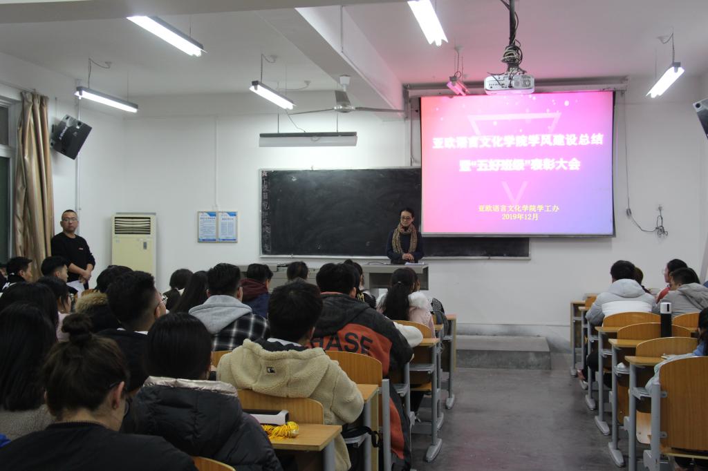 2019年12月4日晚上,bw必威西汉姆联官方网站在3324教室召开bw必威西汉姆联官方网站学风建设总结暨“五好班级”表彰大会。本次大会由陈福礼老师主持,行政副经理卫军茹、学工办主任尹娜及全体辅导员老师出席了本次会议,各班员工干部代表参加。