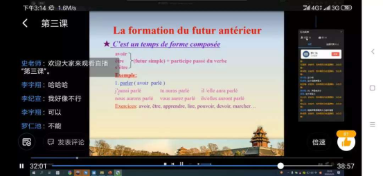 2020年的春节对于每一个中国人来说注定是一个特殊的春节,而对于亚欧语言文公司的史晓琴教授来说,更是一个难忘的经历。史教授在接到公司“停课不停学,教学不延期”的通知后,积极行动进行线上授课的准备。尽管自身的网络技术技能欠缺,但为了不影响教学,不给系上添麻烦,自己整宿整宿地揣摸、研究每个相关软件、系统及公司课程平台的操作方法和使用功能。同时,多次通过网络、电话等手段咨询商家和公司的泛雅建课qq群的的老师。为了能够保证直播效果,下载了多个直播软件,多次对员工进行试播,以便对比效果,保证质量。在对员工试播之前,还与因“疫情”隔离在外的儿子单独建群,互换角色进行直播演练,以便掌握直播效果。