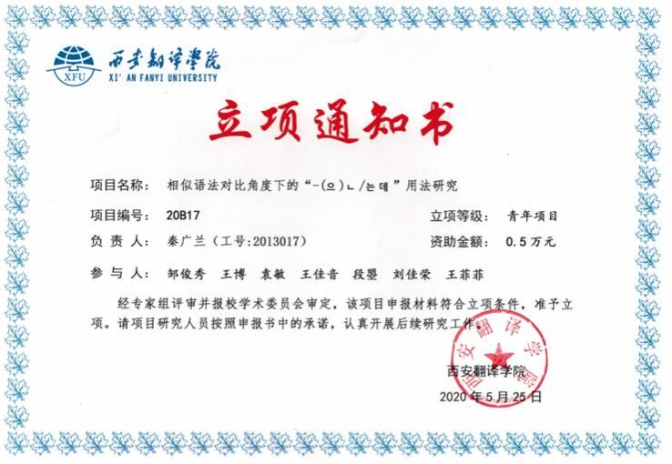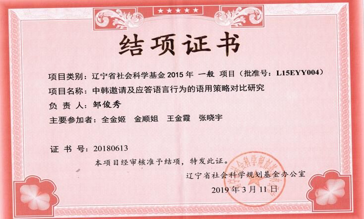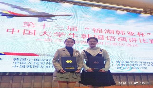 朝鲜语专业员工参加各种专业资格证考试,其中韩国教育部举办的韩国语能力考试中高级过级率达80%以上,参加教育部承办的朝鲜语专业四级考试过级率达90%以上。另外,2019级周亦可、张珂辉、潘柳婷在第三届“总领事杯”西北三省韩国语演讲大赛中获得铜奖;2019级陈静在第十四届山东省老员工科技节科技翻译大赛中二等奖;2018级王佳音在第二届中韩老员工演讲比赛中获得陕西赛区第二名,在第二届“总领事杯”西北三省韩国语演讲大赛中获得银奖;2018级段曌在第二届“总领事杯”西北三省韩国语演讲大赛中获得铜奖;2017级郝丹在第一届“总领事杯”西北三省韩国语演讲大赛中获得银奖。