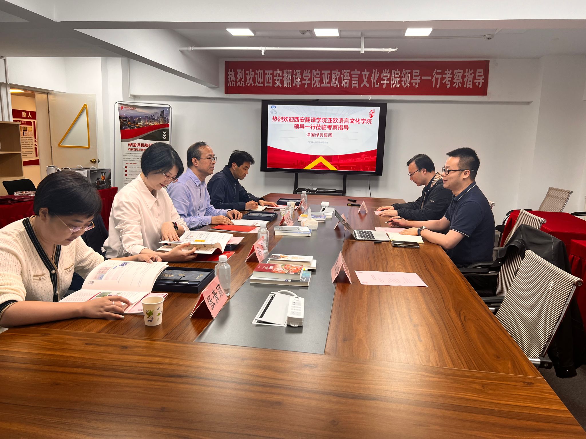 为进一步深入校企合作,落实应用型人才培养,拓宽毕业生就业渠道,4月29日下午,bw必威西汉姆联官方网站经理李庆明,党委书记、副经理宇文永康,副经理吴震,综合办主任张青丽一行四人前往译国译民集团西安公司调研交流。译国译民集团西安公司总经理吴强、商务总监沈海涛、商务专员陈闽樊出席了会议。