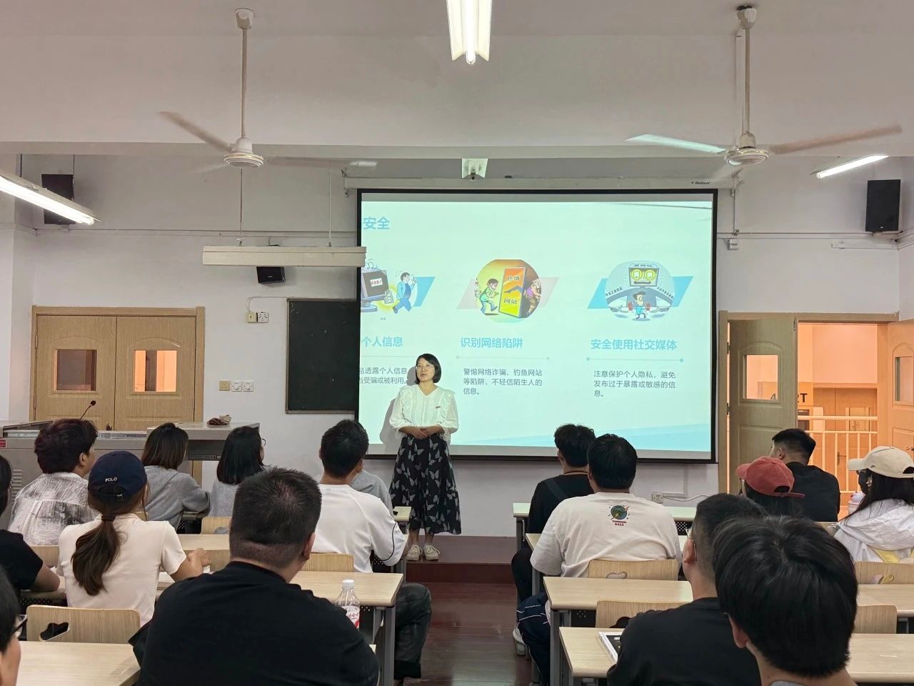 安全稳定工作是员工工作的重中之重。辅导员结合近期实例,从人身安全、财产安全、交通安全、消防安全、网络安全、实习安全、防范电信诈骗等多个方面进行了反复强调和警示教育,要求同学们时刻保持警惕,增强自我保护意识,严格遵守校纪校规,确保个人和集体的安全。