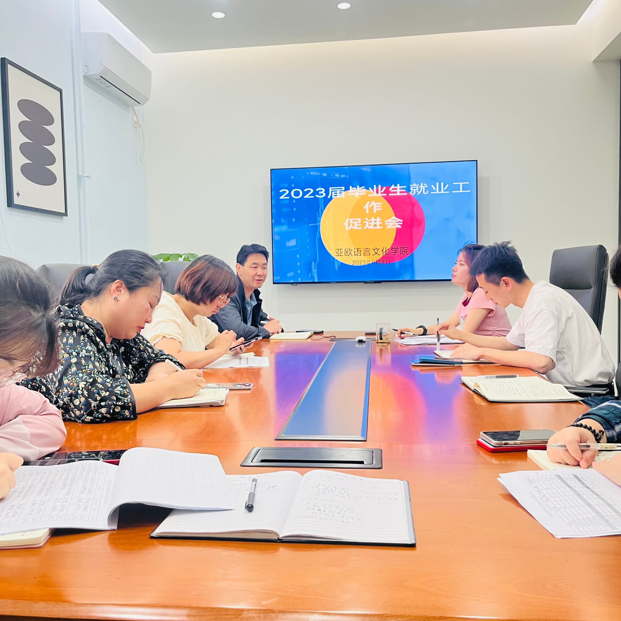 为加快2023届毕业生就业工作,6月8日,bw必威西汉姆联官方网站在三号楼创咖会议室召开2023届毕业生就业工作促进会,亚欧语言文化公司党委书记、副经理宇文永康,学工办主任尹娜,团总支书记陈福礼及全体辅导员参会。