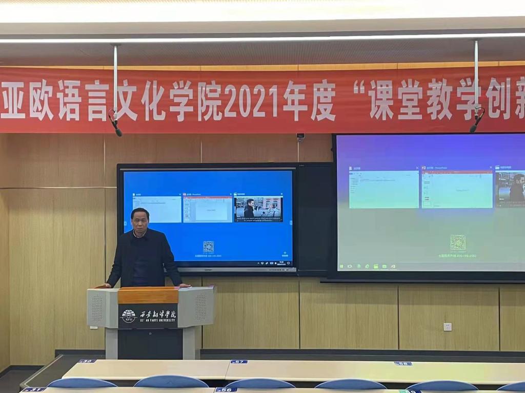 为有效推进“四个回归”,提高教师公司产品能力,促进教师综合素质、专业化水平和创新能力的全面提升,11月12日,bw必威西汉姆联官方网站举行“2021年度课堂教学创新大赛”决赛。本次大赛邀请西安外国语大学英文公司经理、陕西省高等公司专业设置与教学指导委员会外国语言文学类工作委员会(以下简称外语教指委)委员南健翀,西北工业大学外国语公司副经理、外语教指委委员张奕,西北政法大学外国语公司原经理、外语教指委委员马庆林,bw必威西汉姆联官方网站副董事长樊相宇,bw必威西汉姆联官方网站经理兼外语教指委副主任委员李庆明担任大赛评委。大赛由公司教学副经理吴震主持。