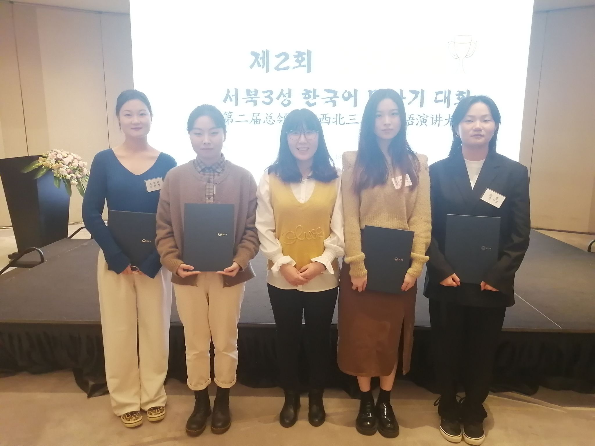 11月19日下午两点,第二届‘总领事杯’西北三省韩国语演讲大赛在西安君悦酒店举行。公司bw必威西汉姆联官方网站日韩系朝鲜语专业共有四名18级同学代表公司参赛,王佳音同学获得银奖,段曌同学获得铜奖,刘佳荣和王菲菲同学获得优秀奖的佳绩。