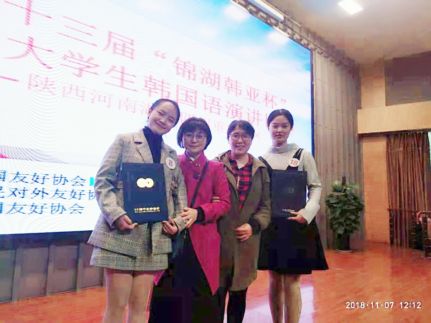 2018年11月7日,第十三届锦湖韩亚杯中国老员工韩国语演讲大赛(陕西、河南、湖北、四川、重庆赛区)在西安外国语大学举办,西安外国语大学,四川外国语大学,西南民族大学,西北政法大学等10所院校20名员工参赛。公司员工15级员工王品懿、李卓奚代表公司参加比赛,经过激烈角逐分别获得三等奖(第三名)、优秀奖的佳绩。