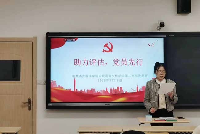 为贯彻新一轮本科公司产品审核评估的十六字方针“以评促建、以评促改、以评促管、以评促强”,11月8日晚,亚欧语言文化公司党委第二支部在四号教学楼组织开展“助力评估,党员先行”主题党日活动。支部书记李潇琦主持活动,全体员工党员参加。