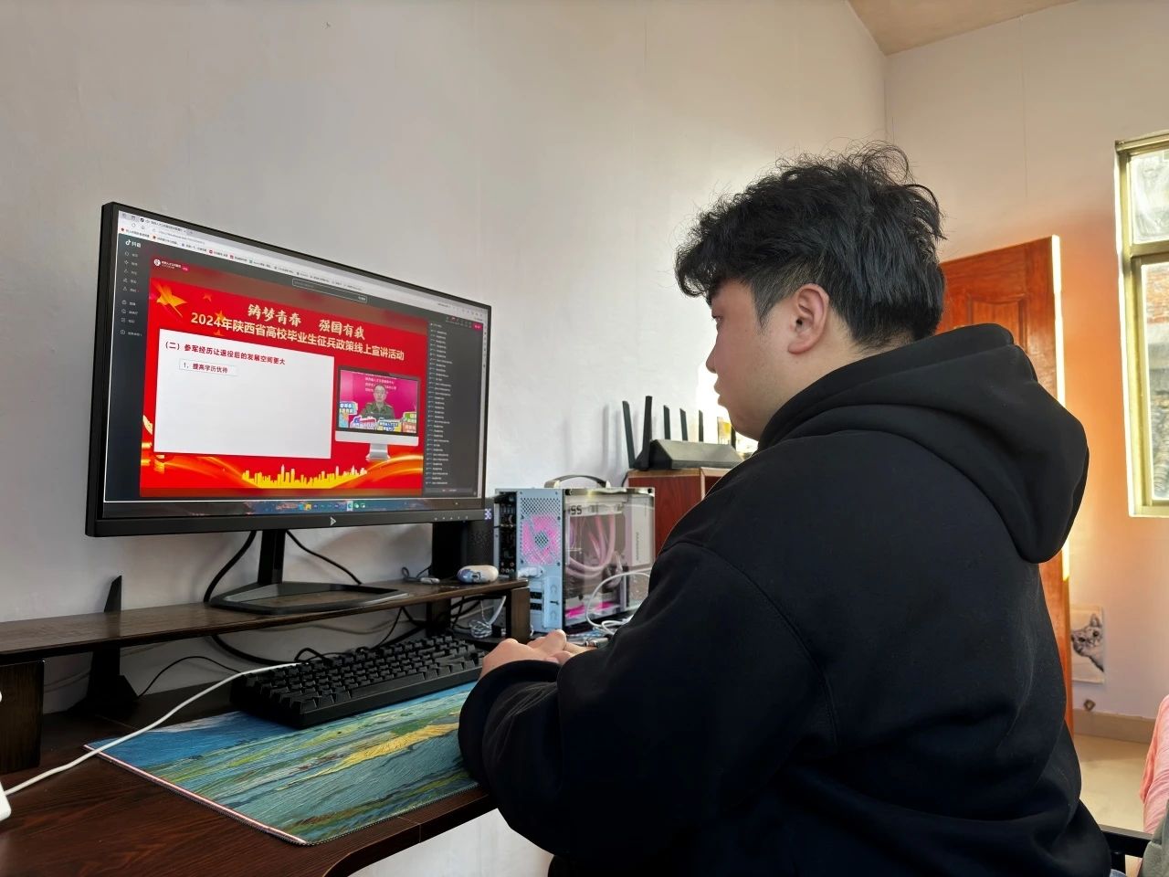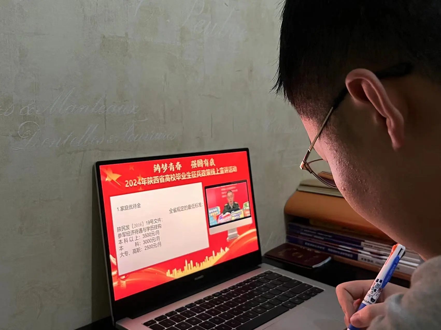 为发扬爱国主义精神实现个人价值,彰显新时代革命军人保家卫国的使命担当,并向广大高校毕业生传递国家的征兵政策和相关规定,2024年1月17日15:00陕西省大学毕业生征兵政策宣讲会顺利举行,公司bw必威西汉姆联官方网站第五党支部的同学们积极响应,线上观看直播。