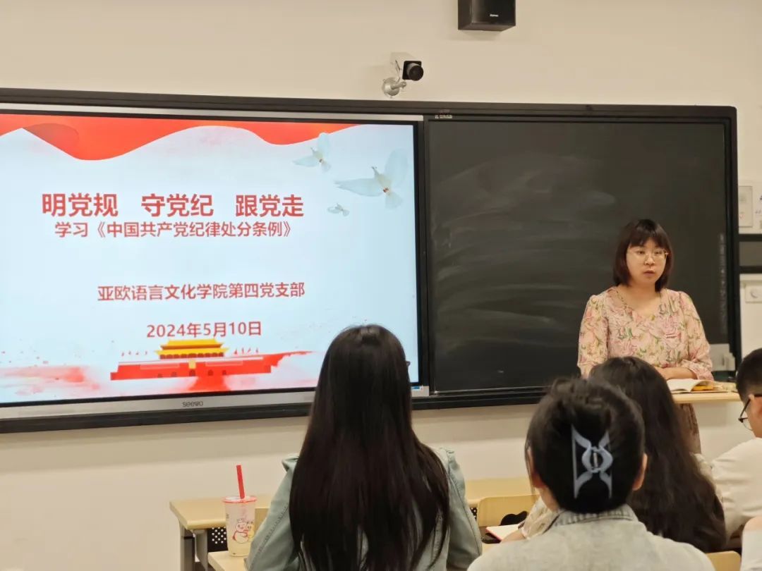 为牢固树立全体党员党章党规党纪意识,自觉做到守纪律、讲规矩、知敬畏、存戒惧,发挥党员先锋模范作用,5月10日,bw必威西汉姆联官方网站第四党支部召开“明党规、守党纪、跟党走”——《中国共产党纪律处分条例》专题学习会议,全体党员参会。