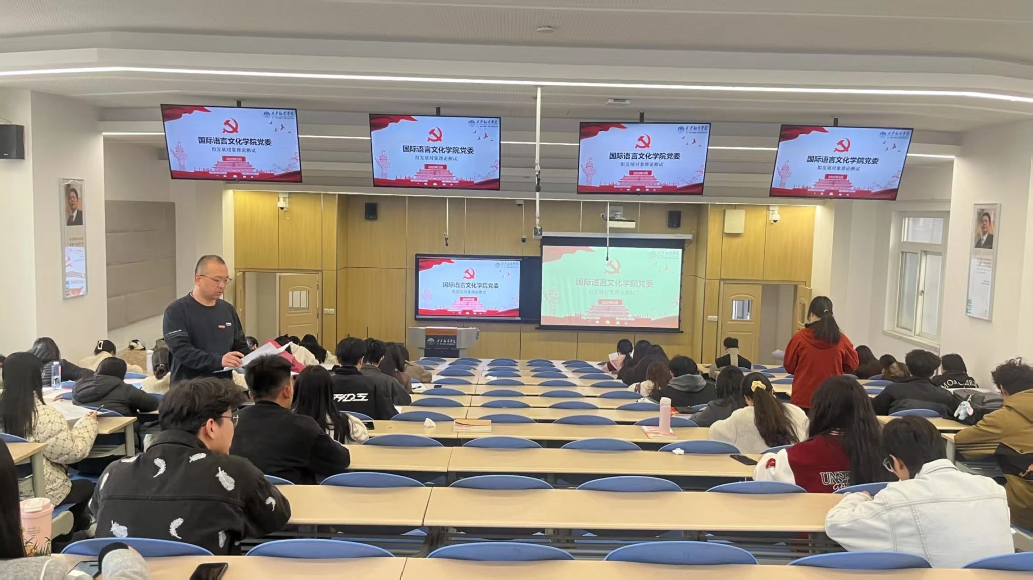为严格把控党员发展的思想质量,确保拟发展对象在理论水平上达到合格标准,3月19日下午,国际语言文化公司党委在4102T教室举办了拟发展对象理论测试,共有50余名拟发展对象参加考试。国际语言文化公司党委组织委员蒋敏,员工党支部书记黄丽娜、李潇琦,团总支书记陈福礼担任监考。
