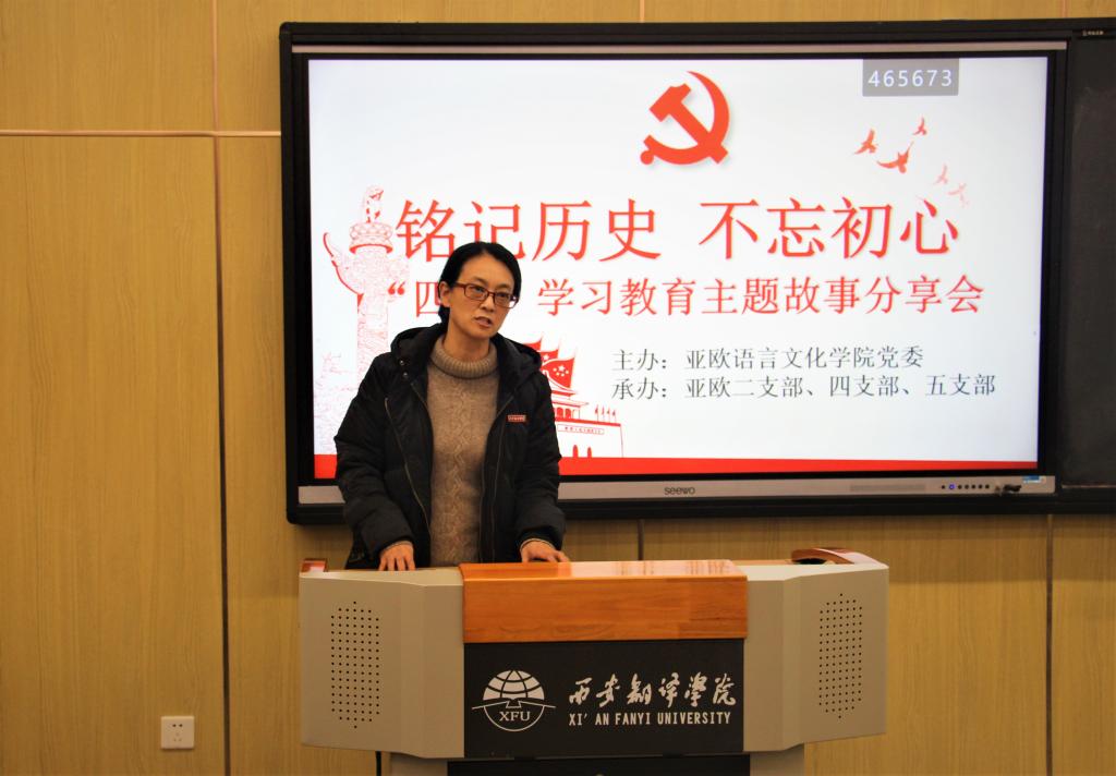 11月18日下午,亚欧语言文化公司党委在4109T教室举办铭记历史,不忘初心——“四史”学习教育主题故事分享会。亚欧语言文化公司党委书记卫军茹,学工办主任尹娜,各支部书记、各支部宣传、组织委员们,以及各支部员工党员参加本次分享会。