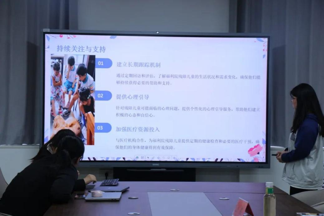 负责人尹一婷。志愿者们如微光汇聚,走进福利院,给予残疾儿童心灵的慰藉和生活的帮助。心理疏导是计划的重要核心。志愿者化身“心灵伙伴”,通过绘本共读、艺术疗愈等方式,打开孩子们的心扉。为助力残疾儿童更好地融入社会,计划积极搭建互动桥梁。通过拍摄公益宣传片、发起线上话题互动,呼吁更多人关注残疾儿童,汇聚社会爱心力量。未来将持续深化服务内涵,联动更多专业机构与爱心群体,让微光凝聚成照亮残疾儿童前行道路的璀璨火炬,帮助他们在爱与关怀中勇敢追逐梦想 。