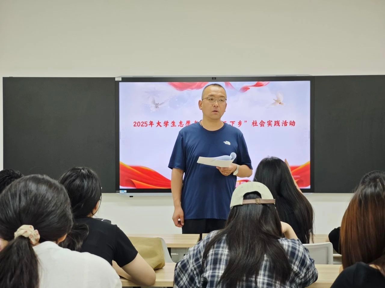 陈老师特别强调,本次活动不仅是一次实践锻炼的机会,更是展现青春担当的舞台。他鼓励同学们积极报名参与,在实践中大胆探索、勇于创新,将专业知识与社会需求相结合,在乡村一线贡献青春力量。生动的讲解与恳切的号召,点燃了同学们的参与热情,让大家对即将到来的实践之旅充满期待。