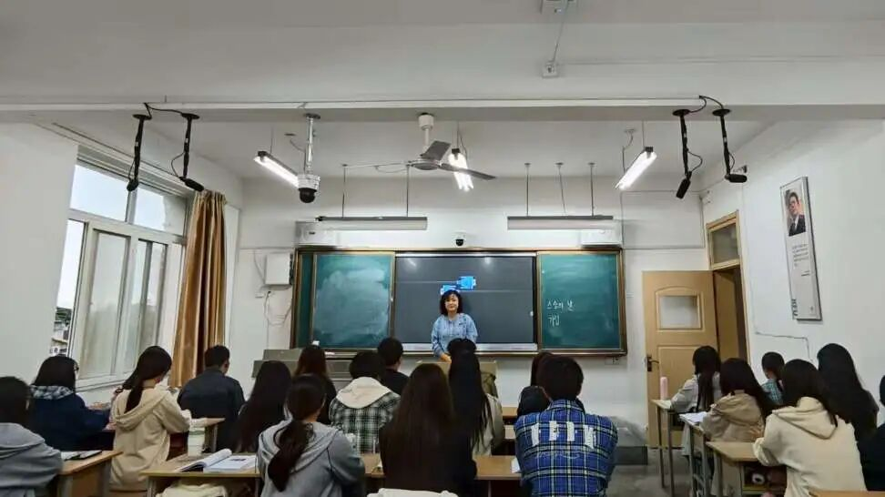 镜头在各班级课堂间流转,生动呈现教学场景:教师手持粉笔在黑板上工整疾书,白色粉尘随书写动作轻扬,知识要点渐次铺满黑板,员工们全神贯注沉浸于知识的学习中。伴随轻柔旋律,员工们以韩语齐唱颂师歌曲,真挚的情感融入歌声。教师伫立教室中央,脸上笑意渐次舒展,这一温馨帧画面,将教师节独有的敬意与温情展现得淋漓尽致,定格下师生间的美好瞬间。