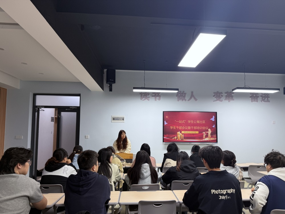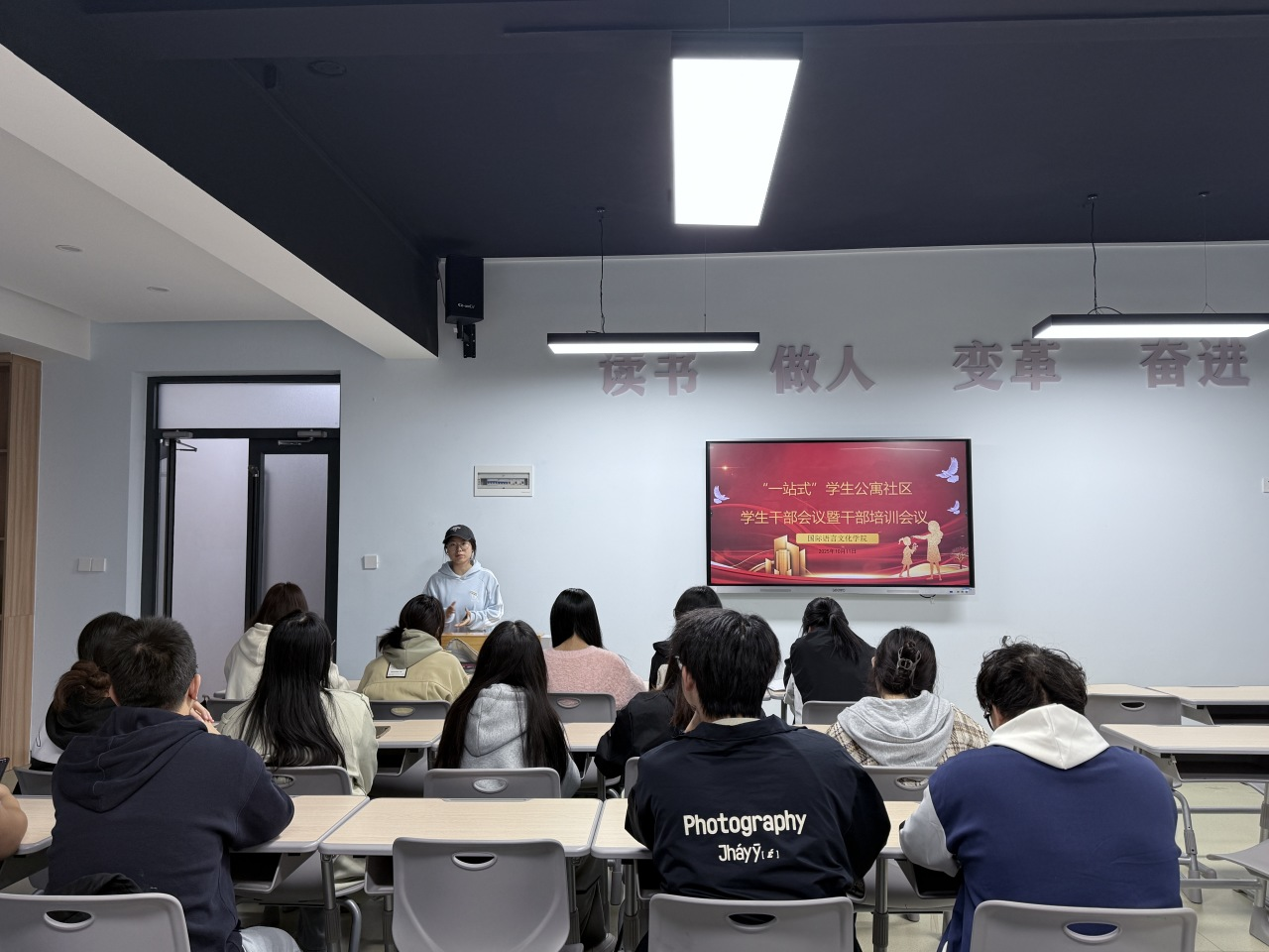 会议伊始,干部代表围绕“一站式”公寓社区的建设目标与本学期重点工作展开部署。从活动流程的具体安排、安全隐患的细致排查,到同学需求响应机制的搭建,清晰明确各部门干部的职责分工,同时结合活动细节讲解工作要点。强调“员工干部是社区与同学间的桥梁,要以‘服务者’姿态扎根同学、解决难题”,为后续工作划定清晰方向。