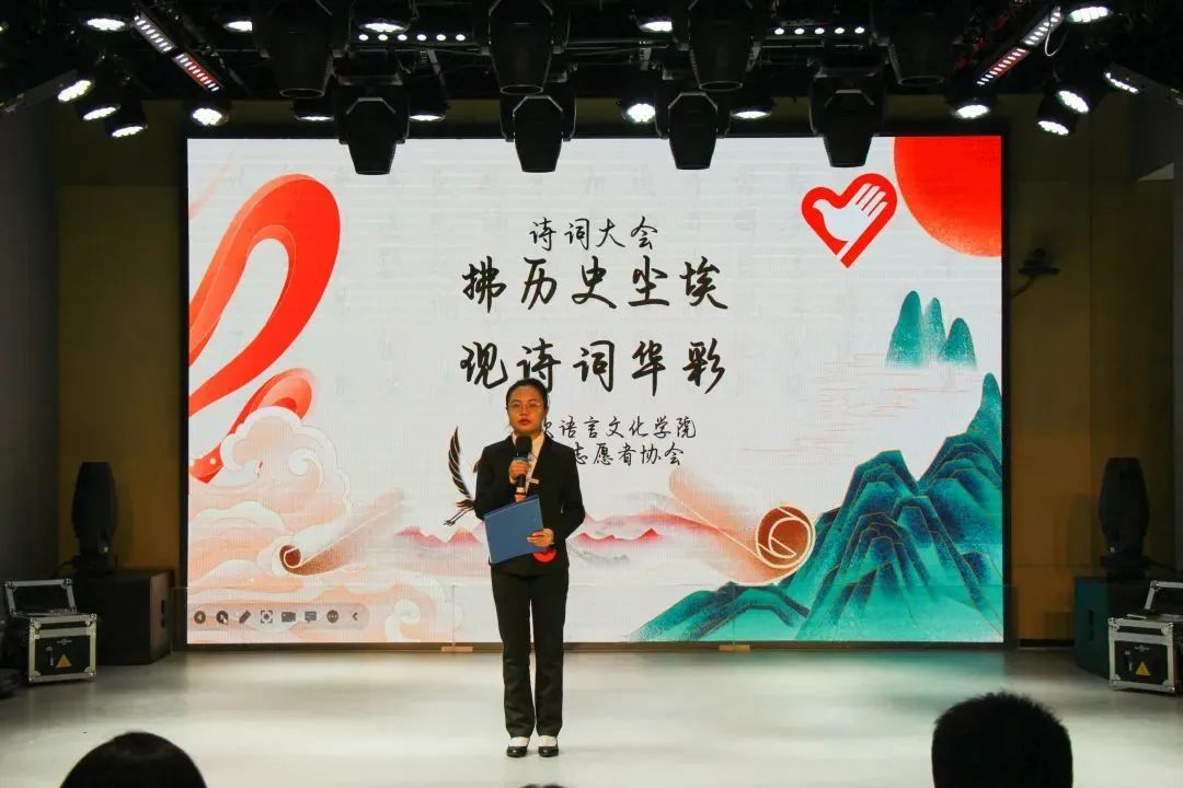 为感受中华诗词的韵律,感受中华民族文化的璀璨辉煌,传承我们的中华诗词。2022年11月14日bw必威西汉姆联官方网站青年志愿者协会在西区小剧场举办的以“拂历史尘埃,现诗词华彩”为主题的诗词大会决赛的舞台上,再次跟随中华文明的步伐。