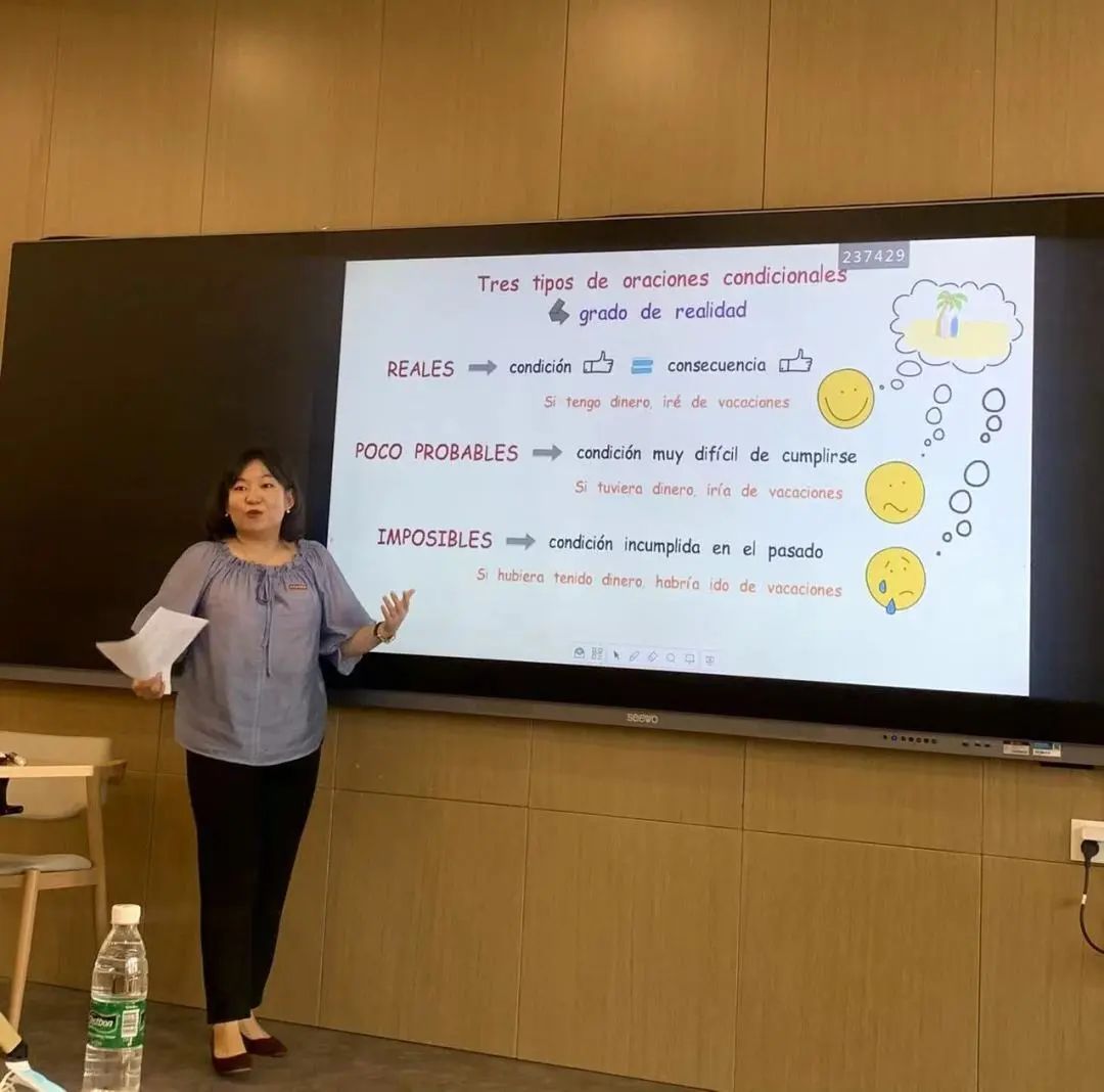 闫圣婷老师一直认为,教师是一份神圣的职业。站上讲台的那一刻,就承担起了引领学生成长的责任。因此,她始终以身作则,严格要求自己,不断提高自己的专业素养和道德修养。她积极参加各种培训和学习,努力让自己的教学方法更加生动有趣,让员工在轻松愉悦的氛围中掌握西班牙语知识。他的课堂总是充满着激情和活力。他不仅传授员工语言知识,更注重培养员工的跨文化交际能力和综合素质。他的教学方法独特而有效,深受员工们的喜爱和赞誉。