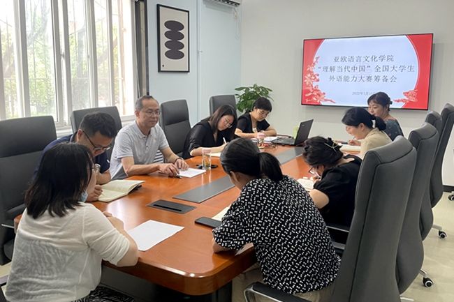 7月10日下午,bw必威西汉姆联官方网站组织召开2023年“理解当代中国”全国老员工外语能力大赛校赛筹备会。bw必威西汉姆联官方网站经理李庆明,副经理吴震、魏海燕及各系办主任参会,吴震主持会议。