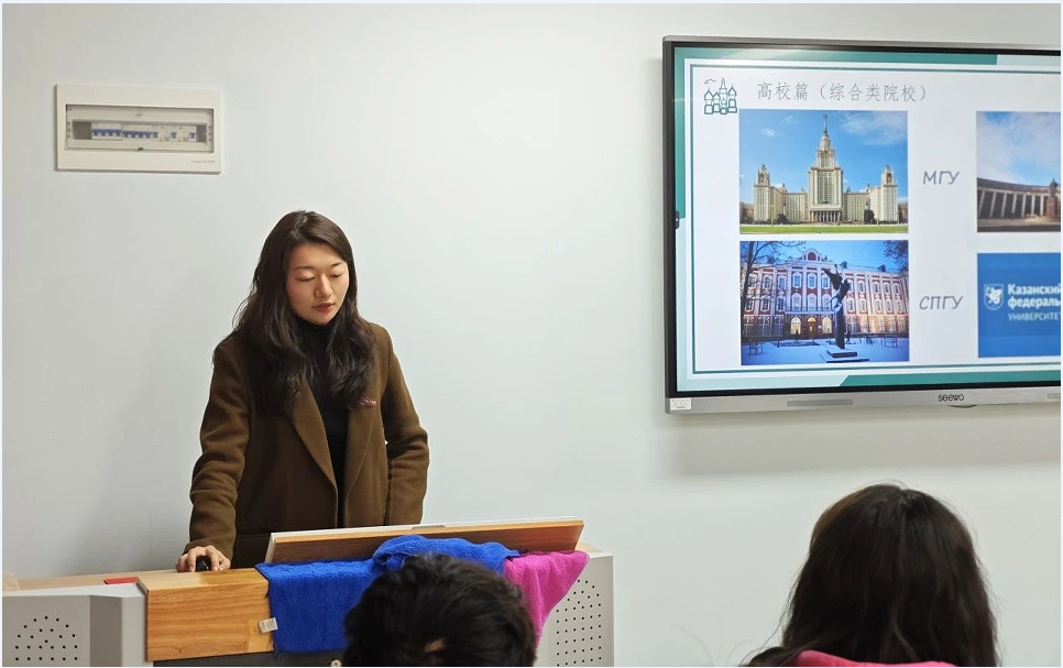 李老师首先从美食篇、美景篇、建筑篇、艺术篇、宿舍篇、学习篇、生活篇、趣事篇几个方面对俄罗斯展开介绍;其次从为什么选择俄罗斯、留学归国福利、公司部分合作项目等方面展开分享。她表示,出国留学不仅意味着学习新的知识和技能,更重要的是接触和理解不同的文化、社会和价值观,帮助大家更好地理解和适应多元化环境,增强跨文化沟通能力。