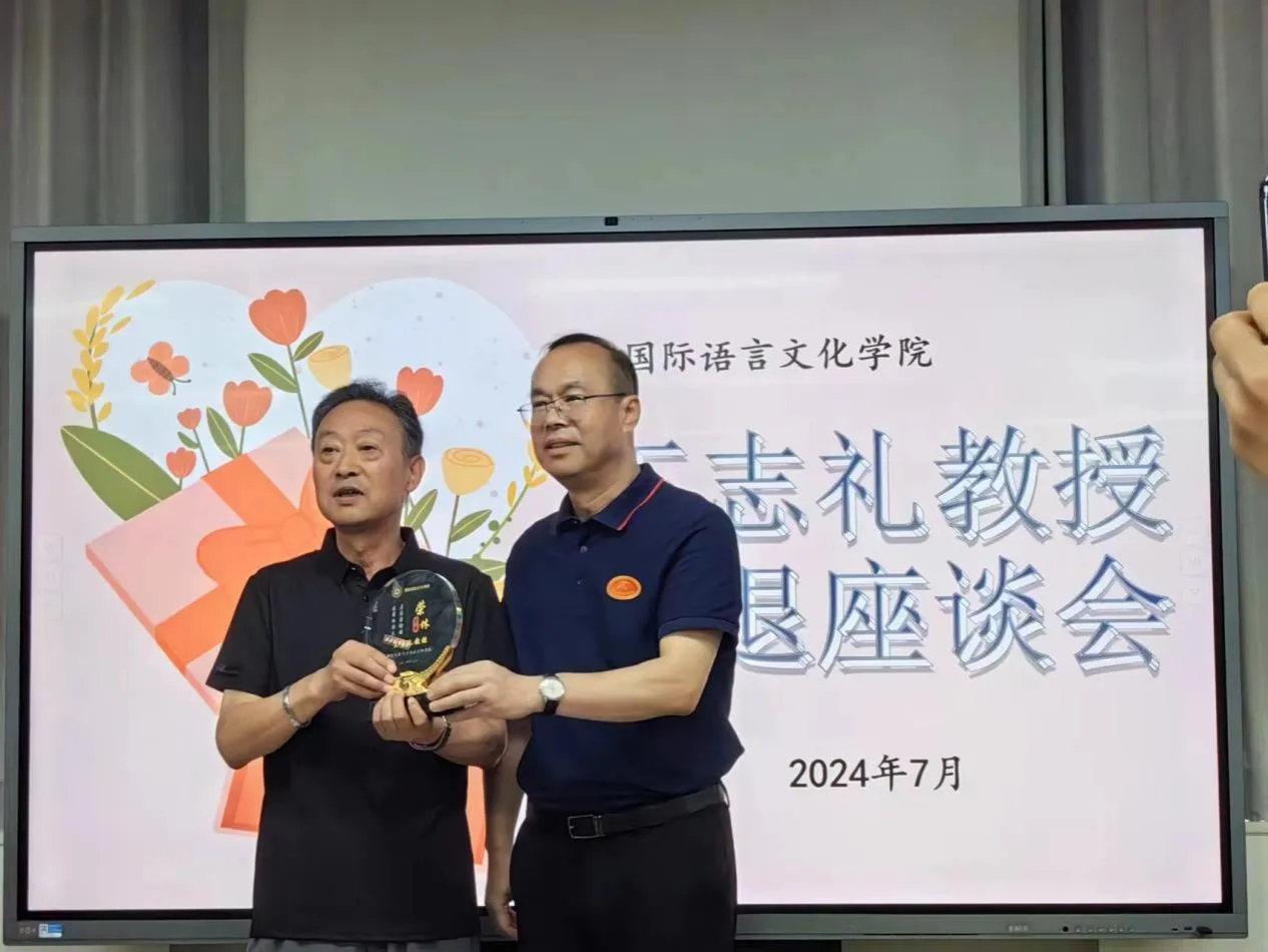 座谈会在热烈的掌声中迎来了最后一个环节——荣休仪式。公司领导为王教授颁发了荣誉奖杯和纪念品,全体教师与王教授合影留念。