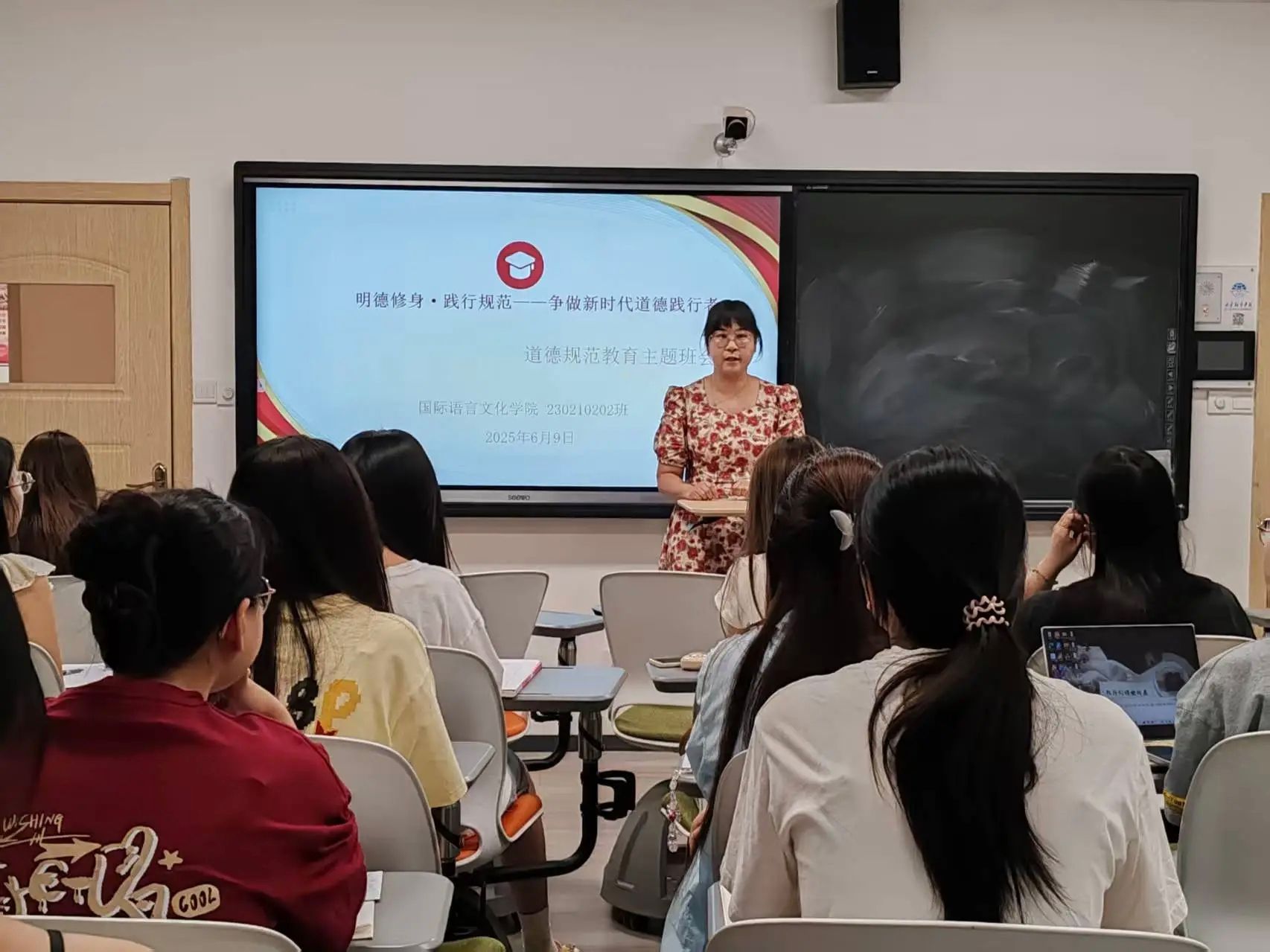 班会伊始,辅导员围绕“新时代老员工道德修养的核心内涵与实践路径”发表主题讲话,并结合生动案例,深刻剖析了学术诚信、网络文明、人际交往、社会公德等老员工日常学习生活中面临的道德议题,强调“德为才之帅,才为德之资”,良好的道德品质是立身之本,成才之基。辅导员重点强调了学术诚信,就学术不端真实案例,让员工深刻认识到独立思考与诚信写作对学术生命的重要性。辅导员指出,在信息纷繁复杂的当下,老员工更应坚守道德底线,明辨是非,自觉抵制不良风气,将道德认知内化于心、外化于行,努力成为有理想、有道德、有文化、有纪律的时代新人。