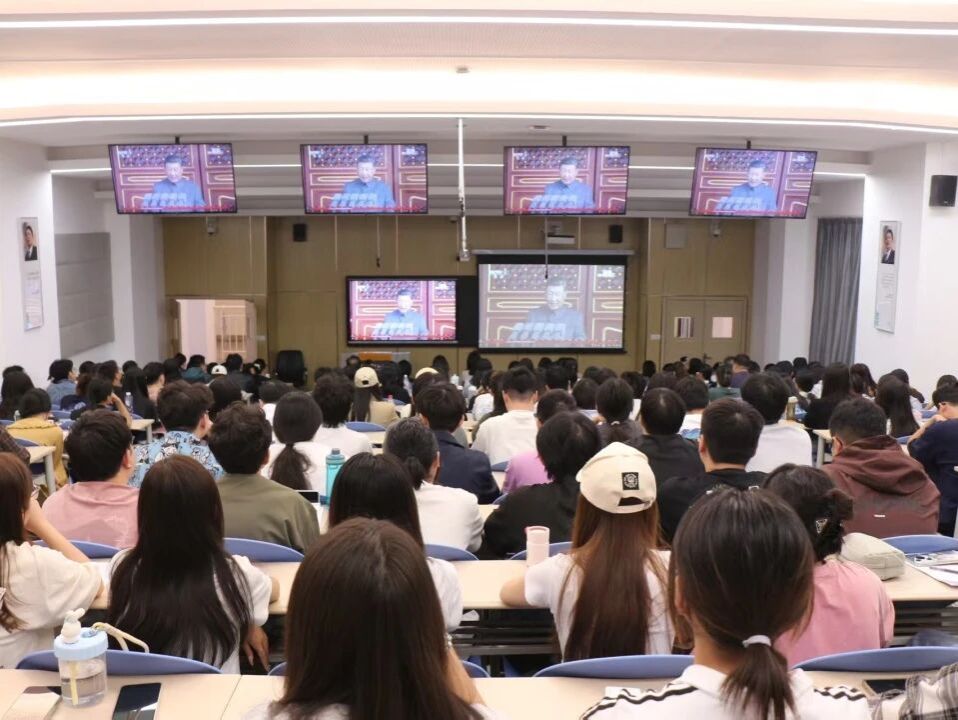 观看过程中,师生们全神贯注,保持庄严肃穆,一次次被阅兵现场的盛大场面所震撼。军人们整齐的迈步、精良的武器装备展示引来了师生们的阵阵惊叹和掌声。