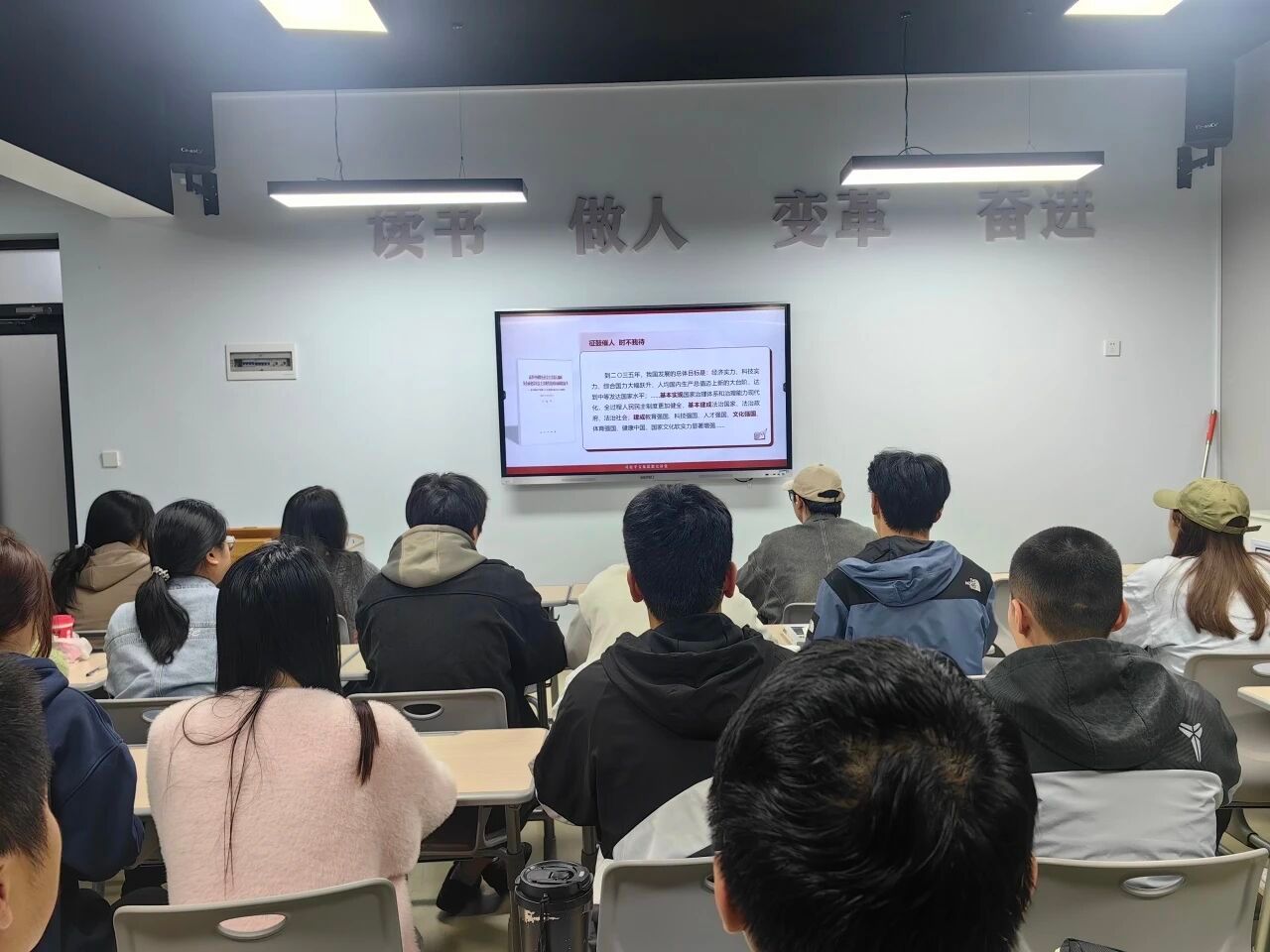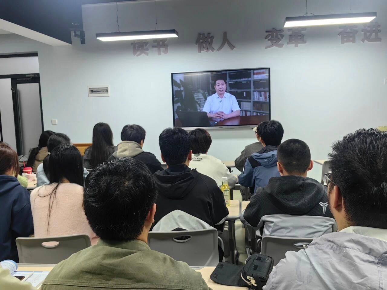 为保障学习秩序和效果,各班级辅导员提前通过班会、班级群等多种渠道向员工宣传本次思政大课的重要意义。收看过程中,教师们全程跟班指导,维持秩序,确保学习活动有序进行。