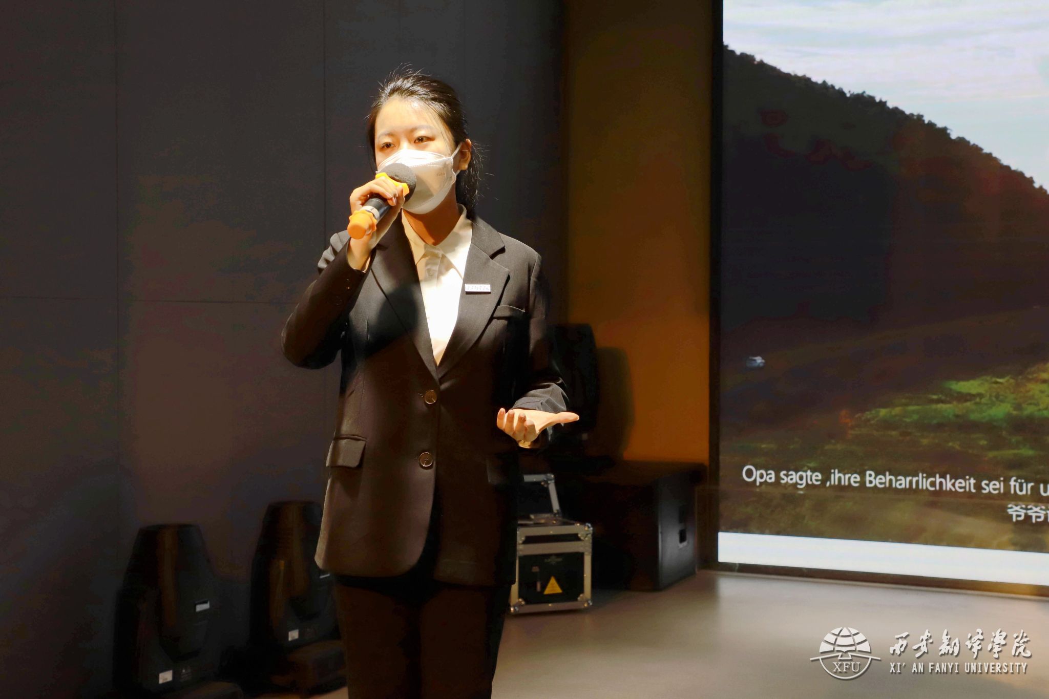 经过激烈角逐,共有六支队伍进入决赛。比赛在诗情画意的开场舞《烟雨行舟》中拉开帷幕。德语专业同学带来视频《塞罕坝的三十六年》,用流利的德语发音将塞罕坝荒原变林海的故事娓娓道来,在展示人工林绿草如茵、牛羊遍地的同时,高度赞扬了塞罕坝护林人艰苦创业、无私奉献的卓越精神,赢得现场观众的阵阵掌声。疫情突袭,多地被迫按下暂停键,西班牙语专业员工带来视频《疫情当前,青年请出列》,通过视频展现了积极响应号召投身疫情防控志愿者行列的西译学子们,他们每一个主动融入社区、村镇抗疫的身影,不仅彰显出公司员工的时代责任和使命担当,更突出表达了青年一代的家国情怀。“一口非遗甜,一抹童年味”,法语专业同学带来视频《糖化接龙挑战—舌尖上的非遗甜》,她们用标准的法语展开对糖画历史渊源和复杂工艺的讲述,将糖画蕴含的历史、美术、民俗风情等多种元素和制作中运用的现代手艺进行详细讲解,视频以博主九月的视频为切入点、糖化接龙挑战为契机,展现了当下年轻人对非遗传承的新态度、新做法。最终法语专业同学凭借其出色表现与精彩讲解获得特等奖。