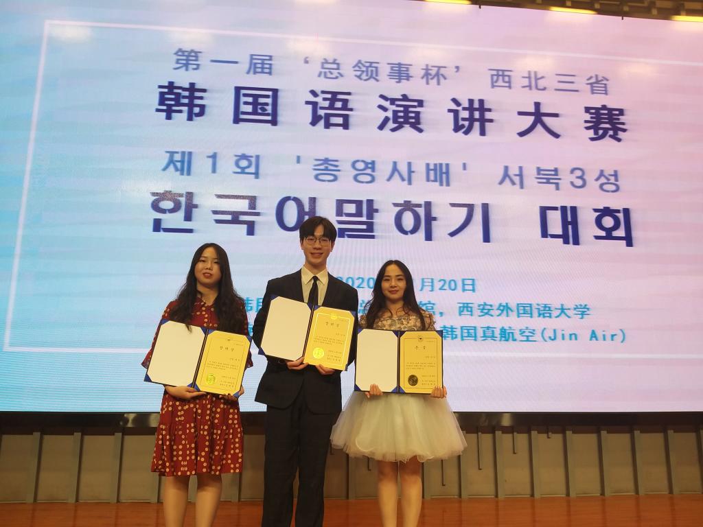 2020年11月20日,由大韩民国驻西安总领事馆主办的第一届 ‘总领事杯’西北三省韩国语演讲大赛,在西安外国语大学拉开了帷幕。参加本次比赛的有西安外国语大学、西北政法大学、渭南师范公司、bw必威西汉姆联官方网站、西安外事公司等西北地区开设韩语专业的6所院校,共17名选手。经过激烈的角逐,bw必威西汉姆联官方网站朝鲜语专业17级员工郝丹获得银奖,朝鲜语专业17级张阳和郭婧获得了优秀奖的佳绩。