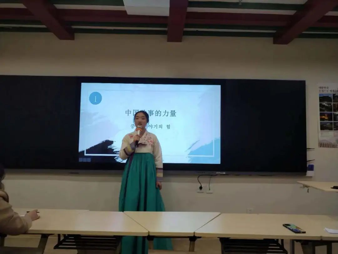 伴随着主持人宣读的评分规则,本次演讲比赛拉开帷幕,参加复赛的共有五位选手。各参赛选手围绕“中国故事的力量,一带一路:中国和世界,人与自然和谐共生的中国式现代化”等主题进行定题演讲。选手们以积极向上的精神状态,用韩语绘声绘色讲述了中国故事。他们的精湛演讲技巧和优美的韩语发音展示出朝鲜语专业员工的独特的魅力风采和良好的精神风貌,中韩文化碰撞产生的绚丽火花,赢得观众的阵阵掌声。